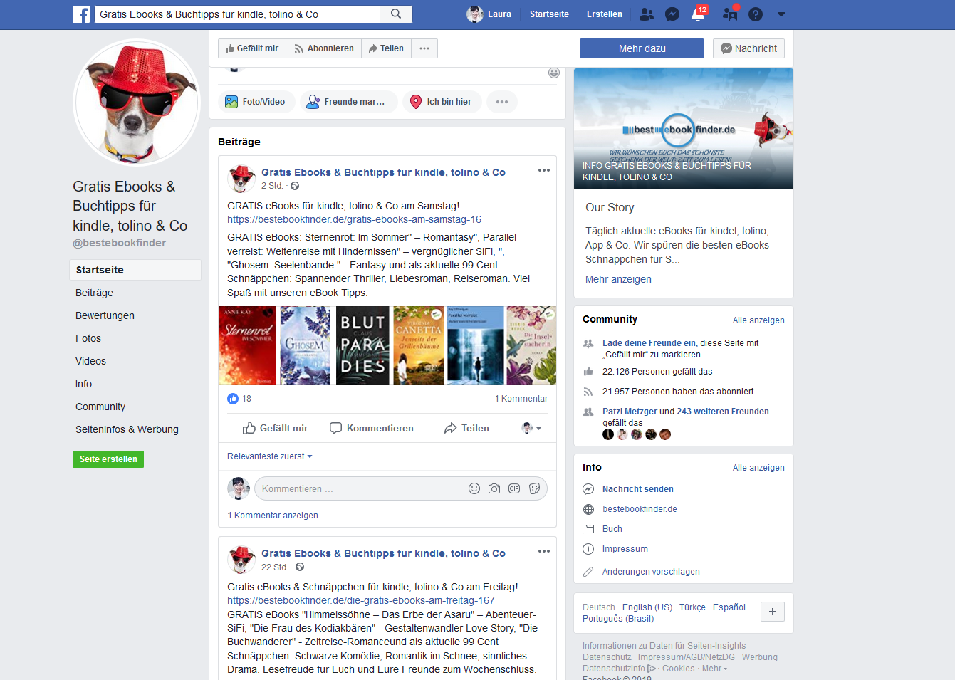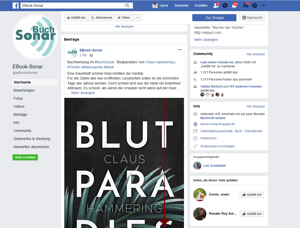 Nach drei verhältnismäßig schwachen Tagen erscheinen Facebook Post, Webseitenmeldung und Newsletter über bestebookfinder.de. Ein überdurchschnittlicher Effekt ist nicht zu verzeichnen, aber ich bin mir dennoch sicher, dass der Thriller ohne diese kleine Hilfe an diesem Tag ansonsten komplett abgestürzt wäre. Samstage sind historisch gesehen immer schlechtere Tage. Hier zählt heute also jeder Verkauf. Und auch ein Facebook Post via ebookninja geht online.