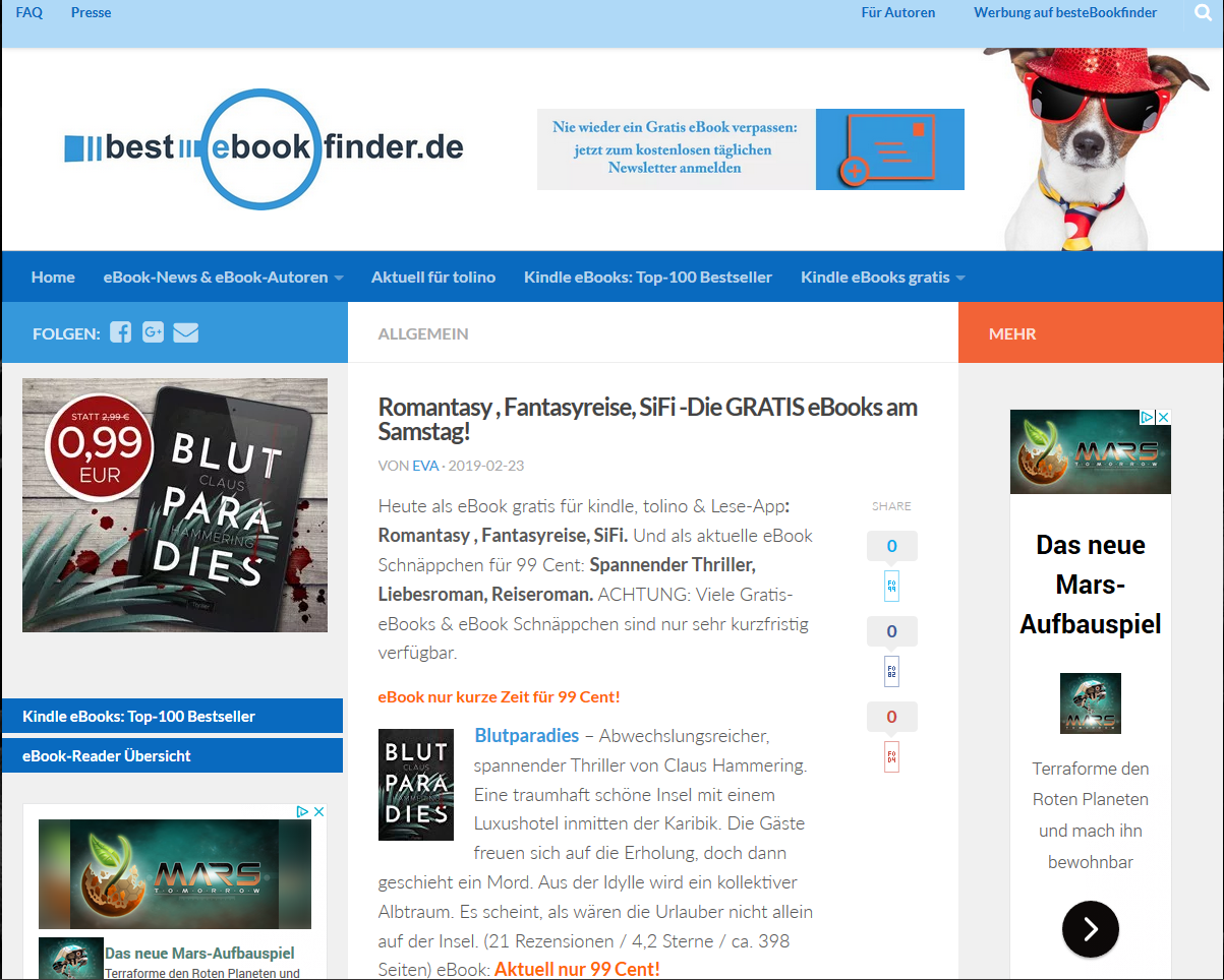 Cover auf Website & Newsletter ebook-rabatte.de