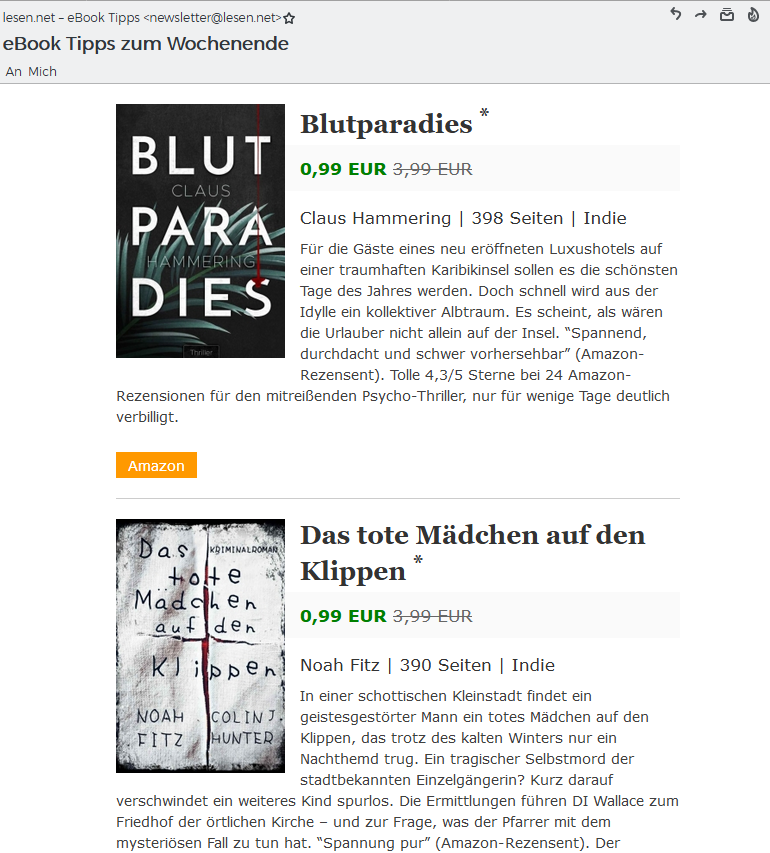 Vor dem Erscheinen von Beitrag und Newsletter auf lesen.net verzeichne ich heute 3 Verkäufe. Gegen 17:00 Uhr erscheint die E-Book Promo auf der Website. Nun wartet alles auf den Newsletter.