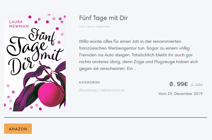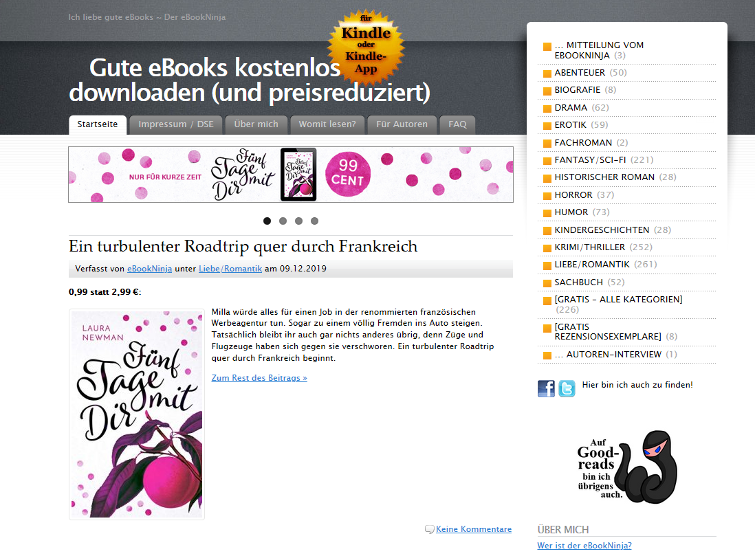 Ende November 2019 erschien mein Liebesroman Fünf Tage mit Dir. Als der Nerd, der ich nun einmal bin, habe ich sämtliche Werbemaßnahmen und die daraus resultierenden Effekte für mich und für euch dokumentiert. Dieser Artikel beschreibt die Entwicklung des Buches während der ersten fünf Wochen nach seinem Erscheinen.
