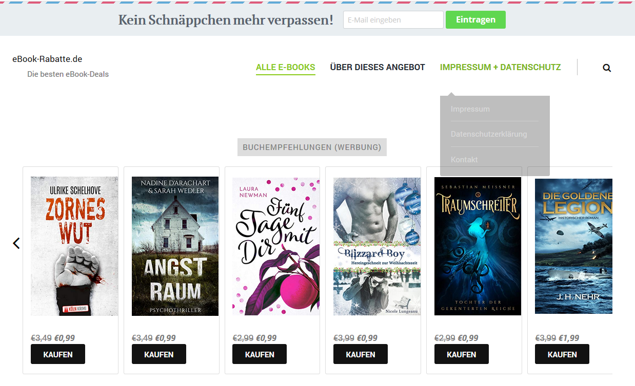 - Das Buch erscheint als Footer-Banner im BuchDeals.de Newsletter.