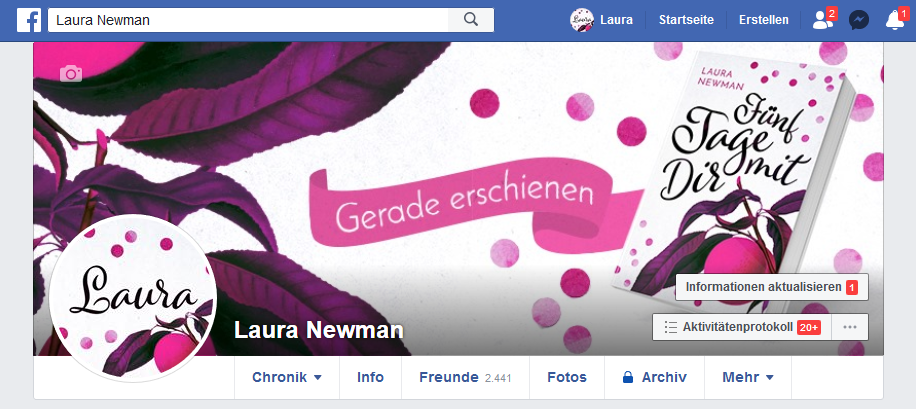 - Ich aktualisiere auch meine Social Media Header mit dem Hinweis, dass das Buch nun erschienen ist.