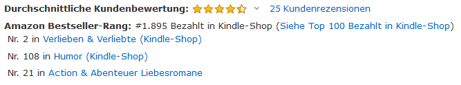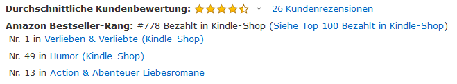 Auch lässt sich das E-Book noch immer nicht mit der Taschenbuchversion verknüpfen. Irgendwie ist hier der Wurm drin. Aber immerhin hat das E-Book nun endlich ein Ranking. Man muss es wohl positiv sehen.