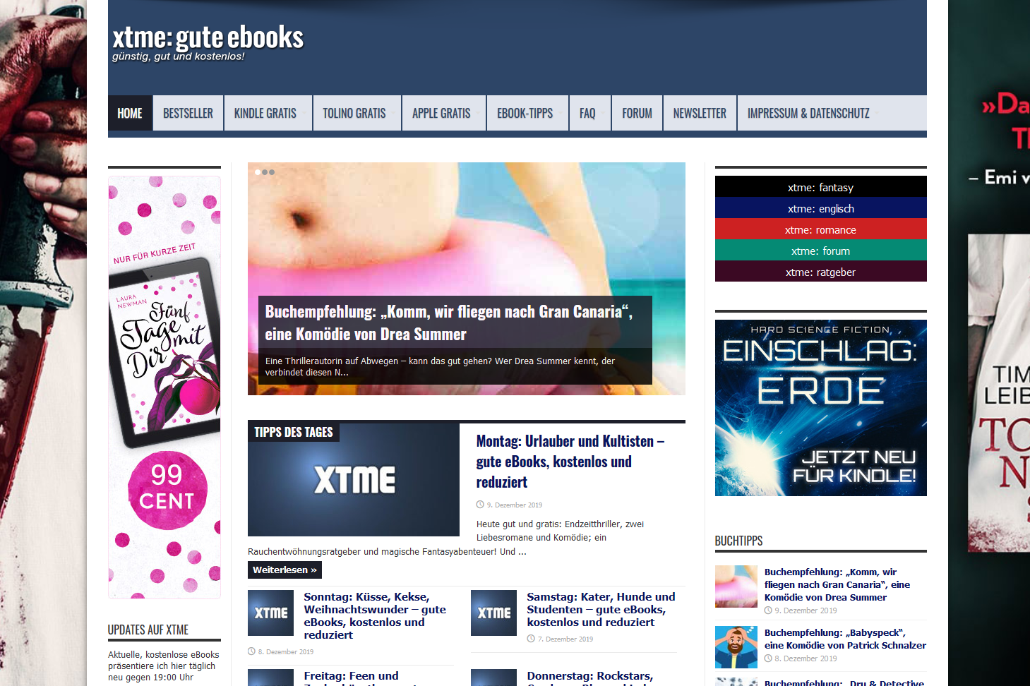 - Da ich nun die ASIN des E-Books kenne, buche ich Anzeigenplätze bei kindofbook.com, eBook-Rabatte.de und ebookNinja.de sowie eine einwöchige Bannerschaltung auf xtme.de. Für im Vorfeld bereits gebuchte Maßnahmen bei BuchDeals.de und lesen.net reiche ich nun die ASIN nach.
